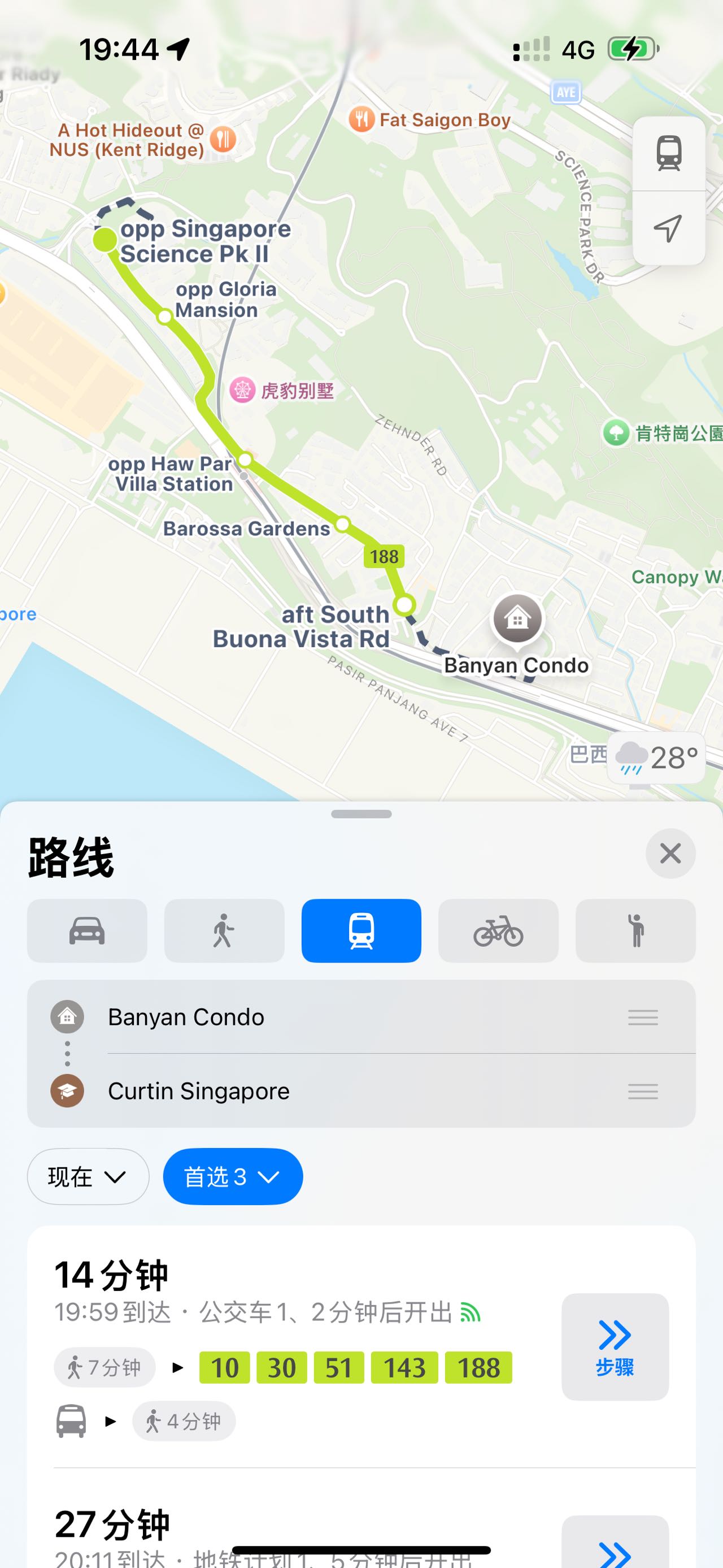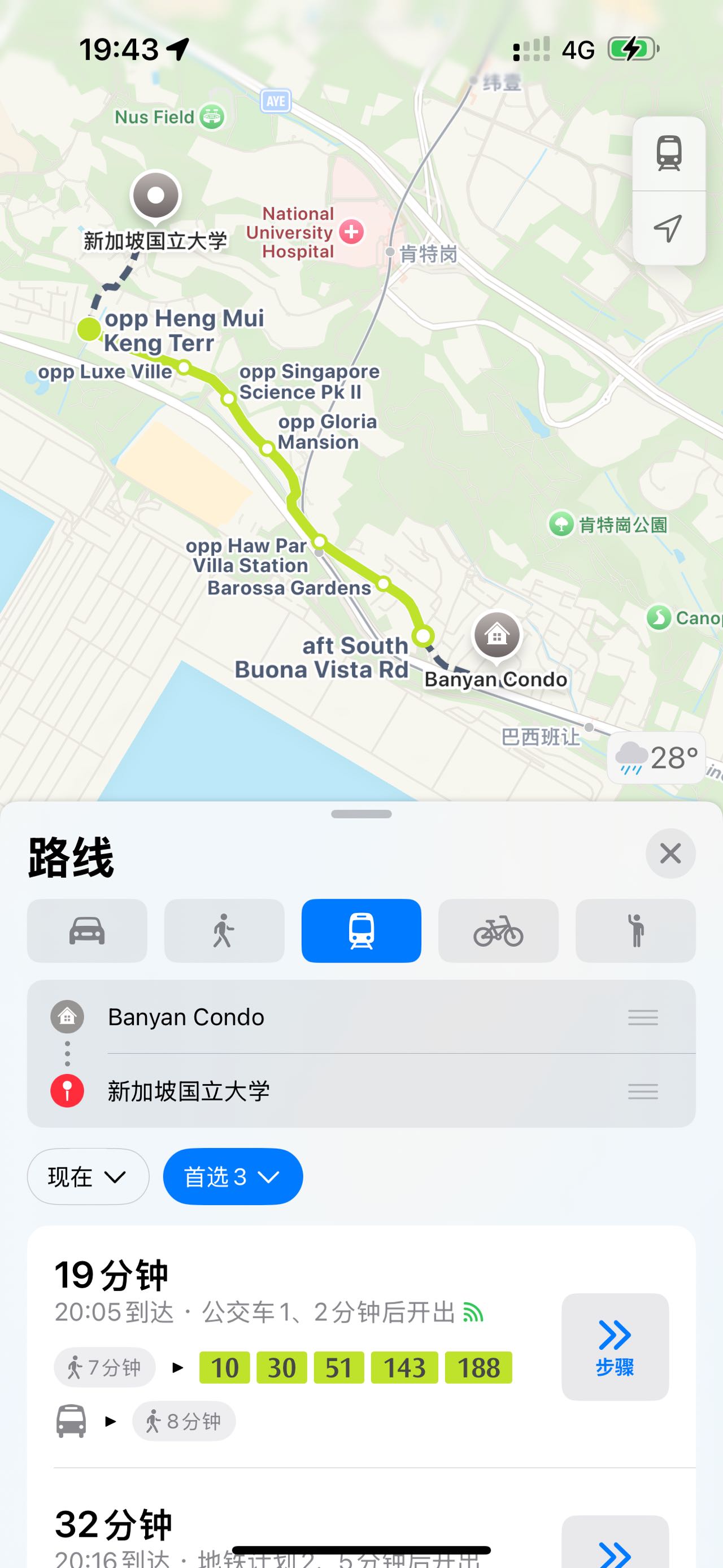 1.NUS:巴士19分钟(含步行时间)
