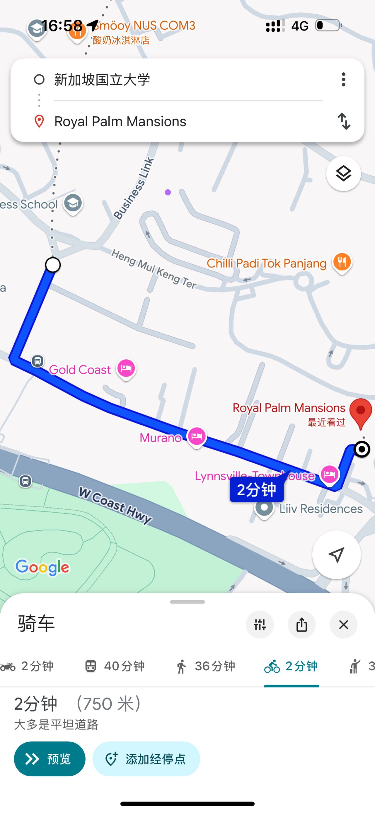 1.NUS:750米步行或自行车2分钟以内可达